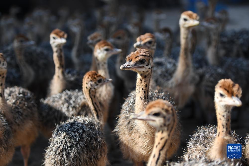 這是辛集市小辛莊鄉小辛莊村辛南鴕鳥(niǎo)養殖園內飼養的鴕鳥(niǎo)幼鳥(niǎo)(10月25日攝)。