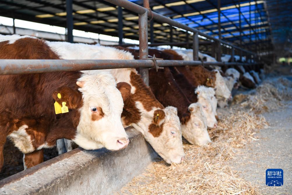 10月23日,重慶市豐都縣高家鎮厚池壩村肉牛育肥場(chǎng)的肉牛在進(jìn)食。