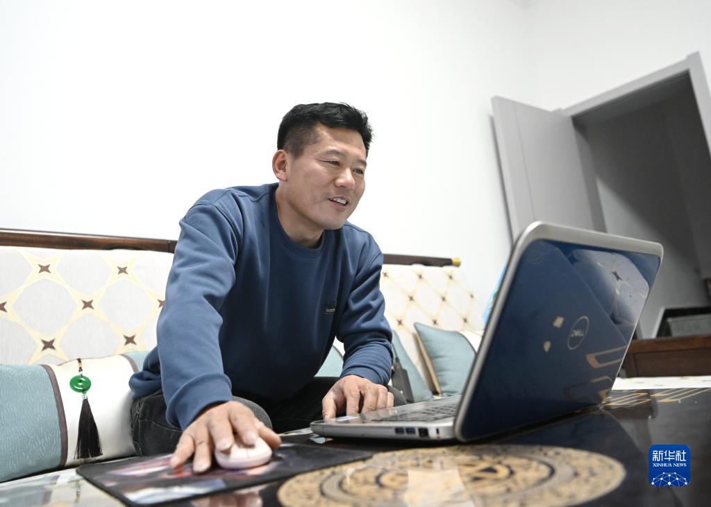 10月24日,韓戰橋在雄安新區安新縣家中用電腦整理照片。