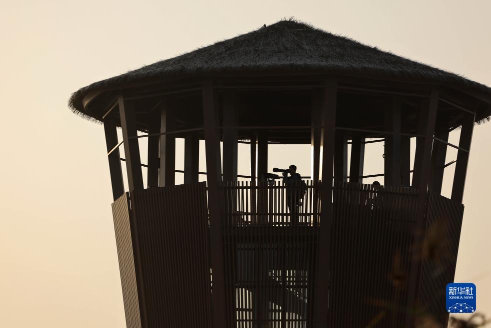 10月24日,韓戰橋在雄安新區孝義河河口濕地瞭望塔拍攝野生鳥(niǎo)類(lèi)。