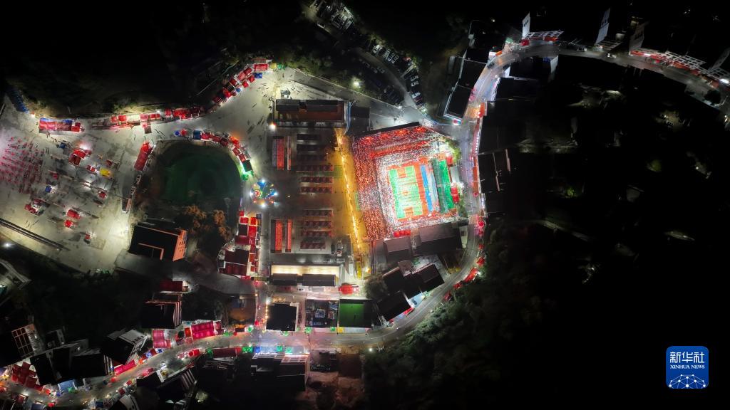 10月25日,夜幕中的臺盤(pán)村(無(wú)人機照片)。