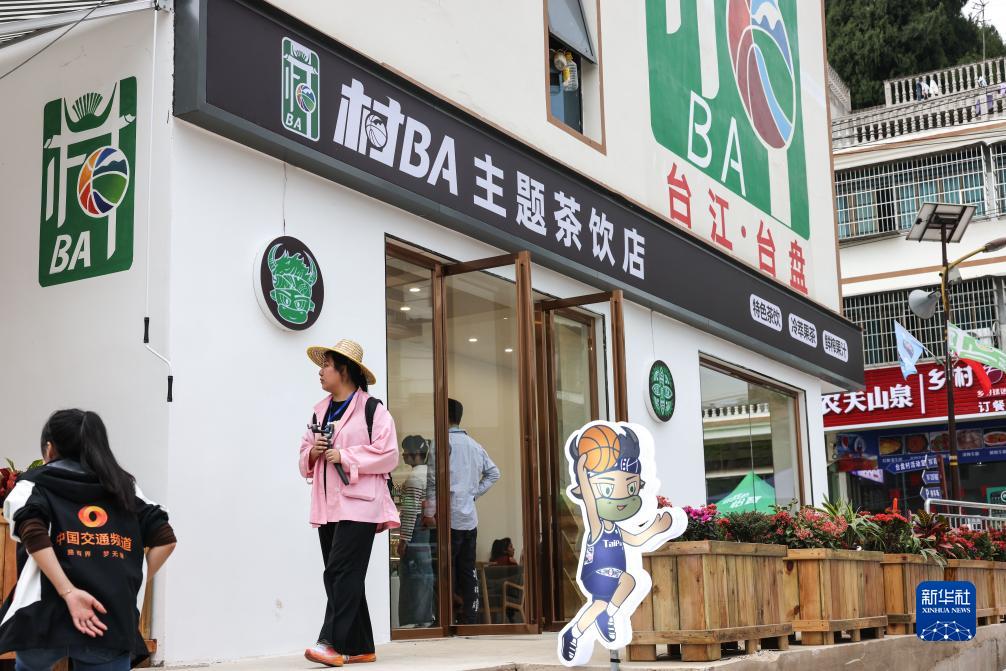 10月25日,游客從“村BA”主題茶飲店前經(jīng)過(guò)。