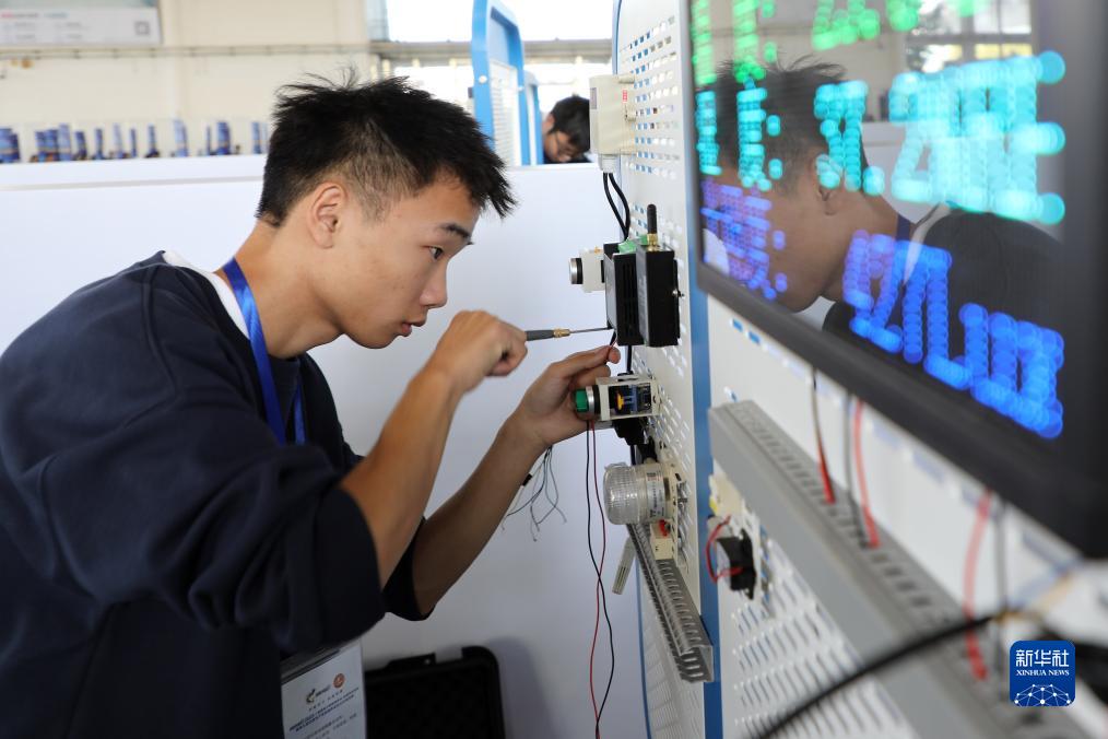 10月26日,參賽選手在進(jìn)行智能硬件裝調員(智能安防方向)技能賽項比賽。
