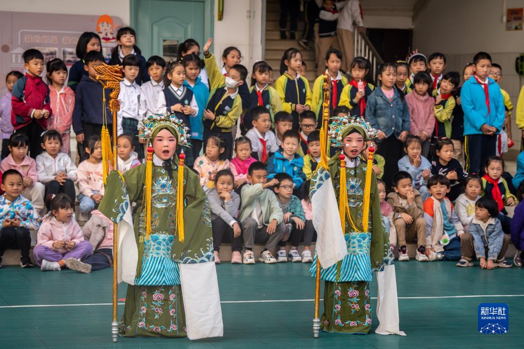 當日,云南省昆明市五華區文林小學(xué)開(kāi)展滇劇演出活動(dòng),少兒滇劇傳習班的小演員們表演了多個(gè)節目。文林小學(xué)自2014年開(kāi)始與昆明市文化館聯(lián)合開(kāi)展滇劇進(jìn)校園活動(dòng),成為云南省滇劇文化傳承項目的第一所試點(diǎn)小學(xué)。目前,學(xué)校已累計培養小演員近500名,孩子們加深了對非遺文化的認識,提升了審美情趣和藝術(shù)素養。