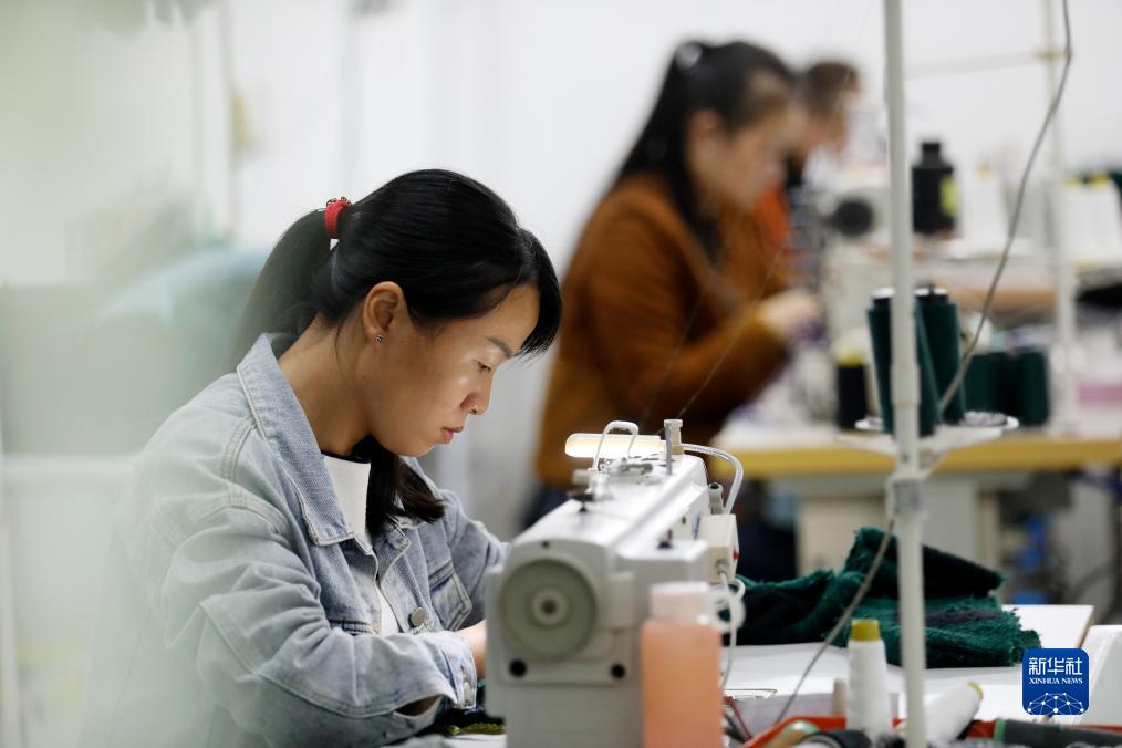 10月25日,村民在資興市州門(mén)司鎮州門(mén)司村就業(yè)幫扶車(chē)間加工服裝。