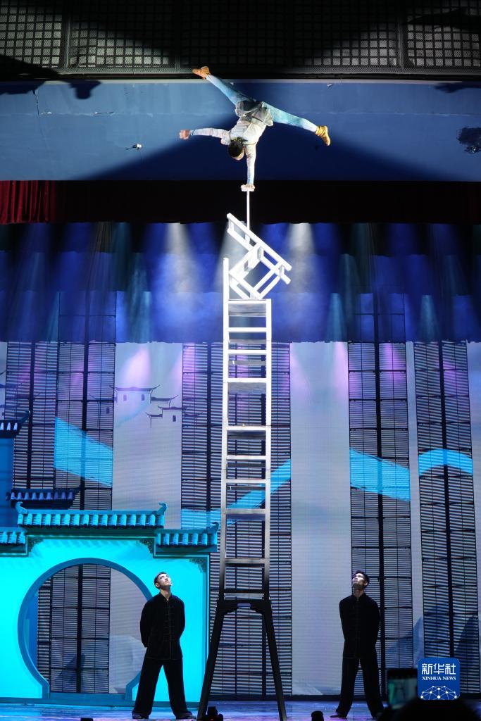 當日晚,中國文聯(lián)、中國雜協(xié)等單位聯(lián)合主辦的“新時(shí)代、新征程——全國優(yōu)秀雜技劇目晉京展演”的收官之作,由四川省遂寧市雜技團創(chuàng )排的雜技舞臺劇《出彩中國》在北京紅劇場(chǎng)上演。