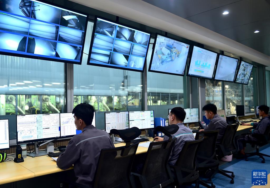 10月25日,在亞太森博(山東)漿紙有限公司監控室,工作人員在監看生產(chǎn)車(chē)間運行情況。