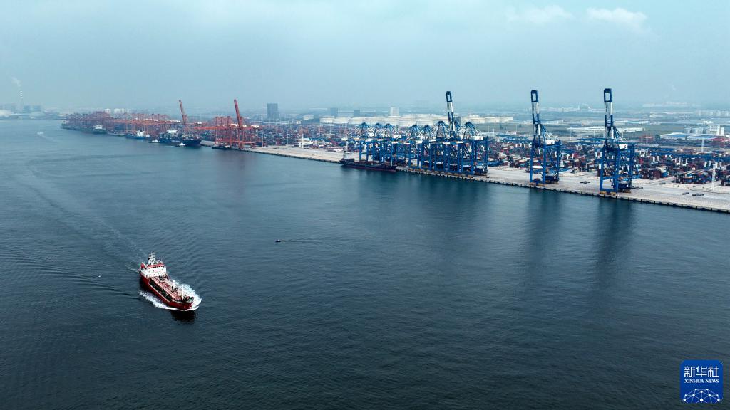 10月26日拍攝的欽州港碼頭(無(wú)人機照片)。