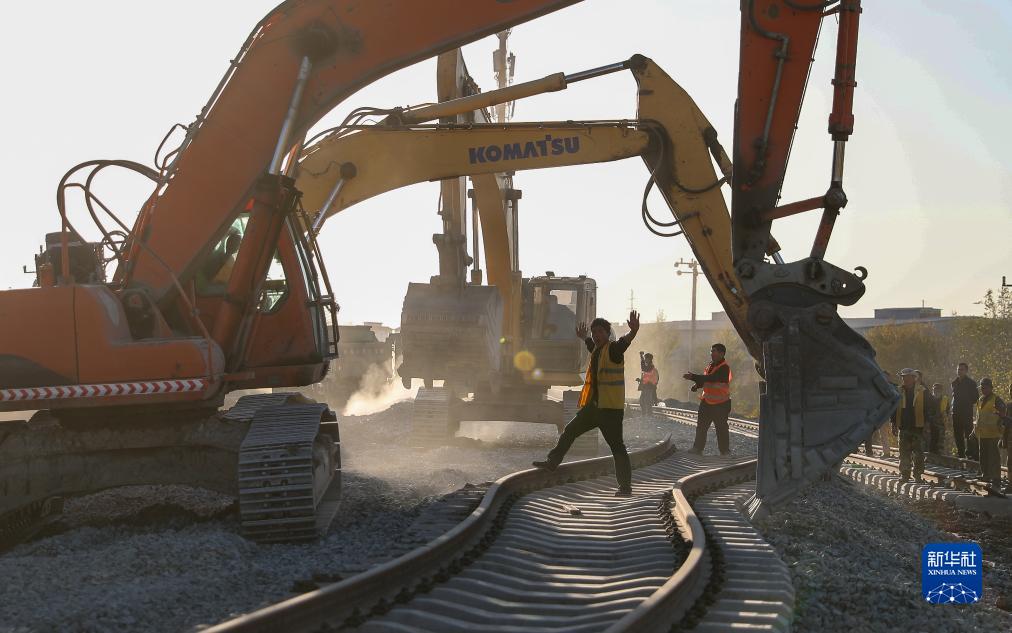 10月26日,施工人員在錦承線(xiàn)金溝站(不含)-朝陽(yáng)南站(不含)區間段轉正線(xiàn)改造封鎖施工現場(chǎng)引導施工機械作業(yè)。