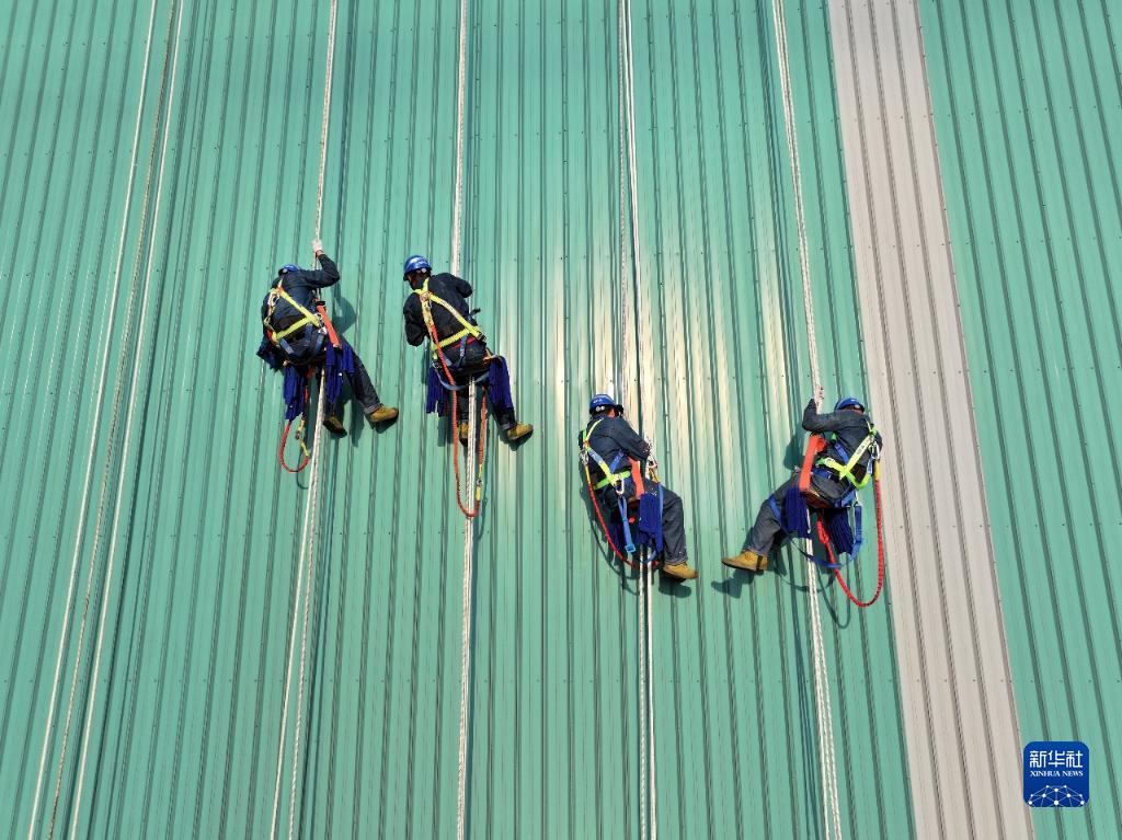 10月27日,國網(wǎng)安徽電力檢修人員對古泉換流站設備進(jìn)行檢修、維護(無(wú)人機照片)。