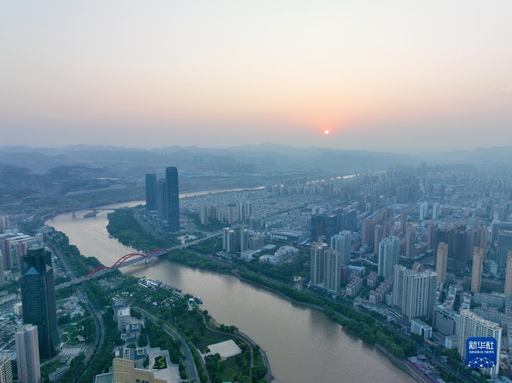2023年9月6日在甘肅省蘭州市拍攝的黃河(無(wú)人機照片)。