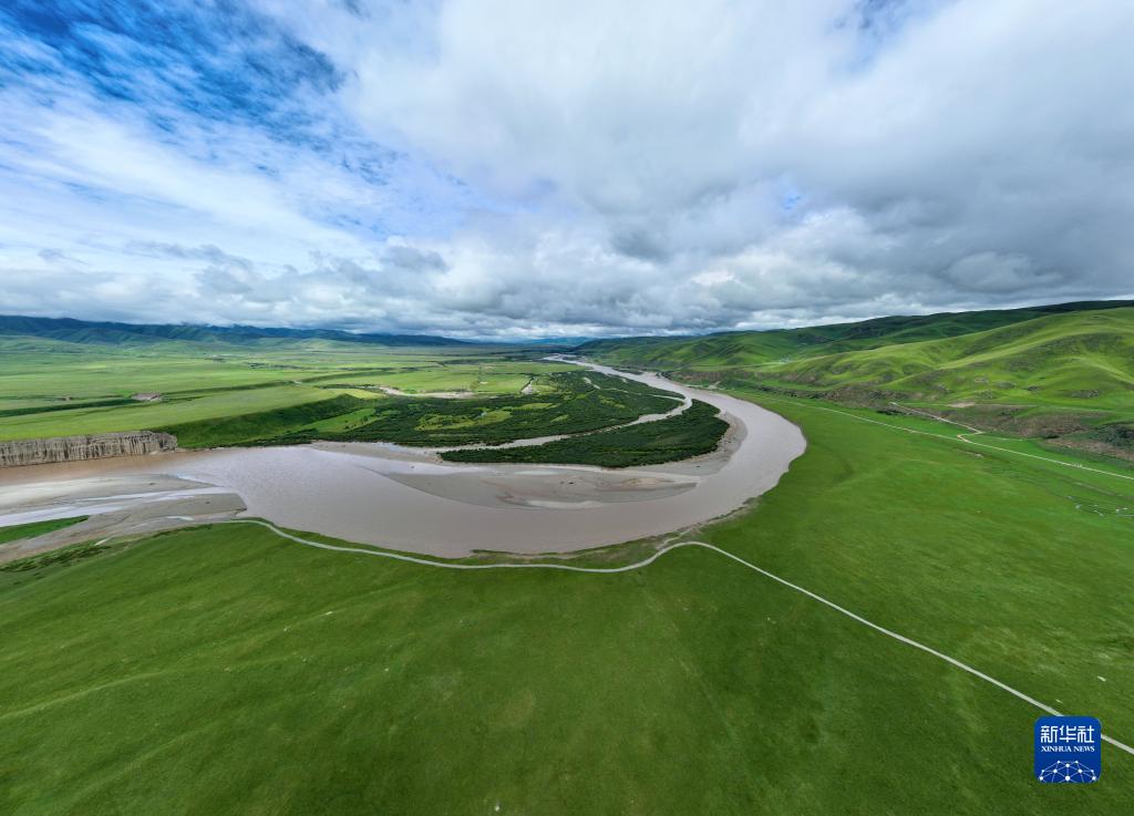 2023年8月17日在青海省黃南藏族自治州拍攝的黃河(無(wú)人機照片)。