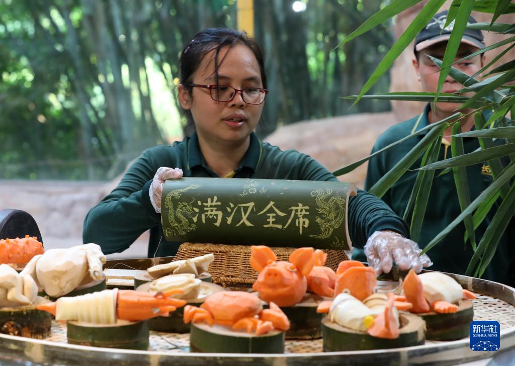 10月27日是國際熊貓日。廣州長(cháng)隆野生動(dòng)物世界保育員為大熊貓“酷酷”準備了豐盛的“滿(mǎn)漢全席”,包括“鳳尾魚(yú)翅”“干連福海參”“羅漢大蝦”等八大菜式。