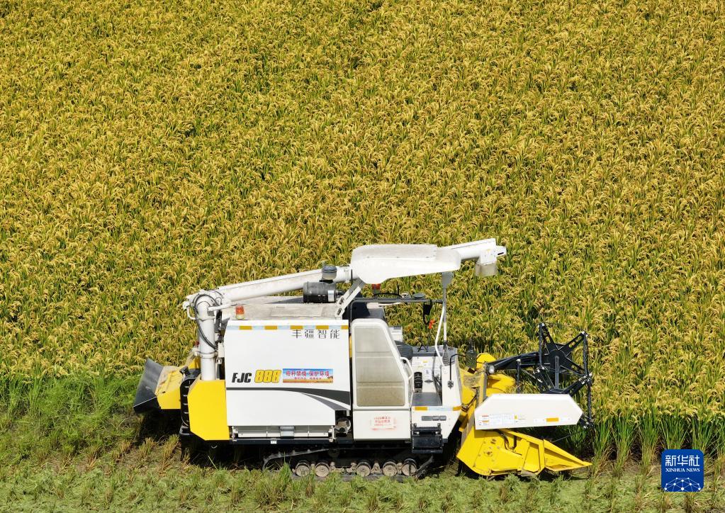 江蘇南通:無(wú)人機械水稻收割忙