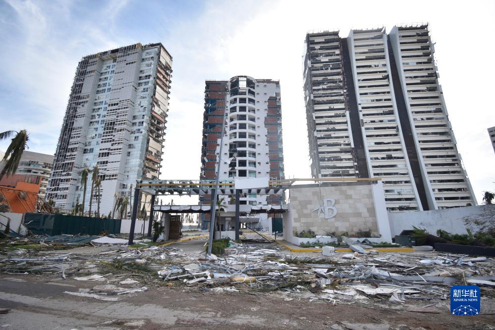 10月26日,在墨西哥格雷羅州阿卡普爾科,建筑被颶風(fēng)破壞。