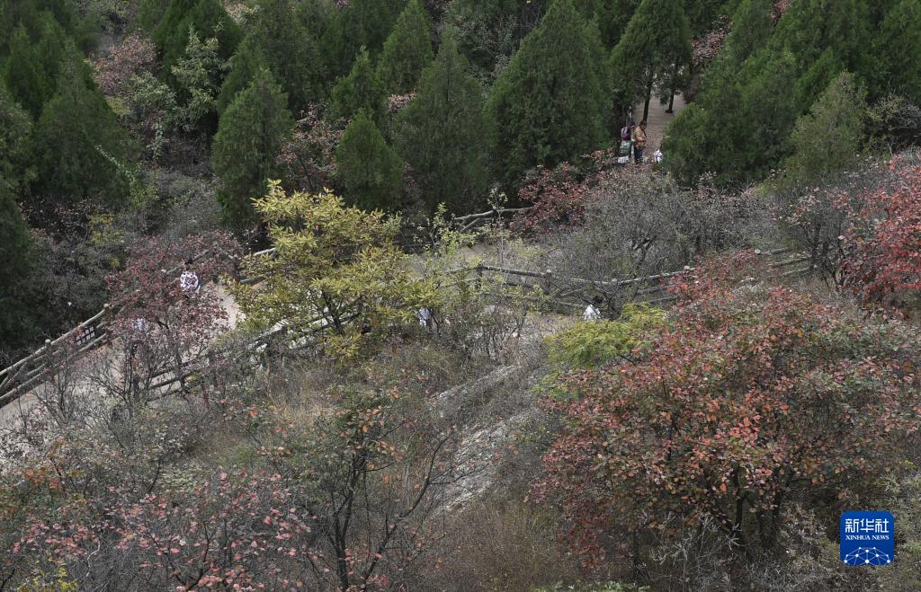 霜降節氣過(guò)后,位于河南省禹州市鳩山鎮的大鴻寨國家森林公園層林盡染,景色宜人,吸引游客前來(lái)登高觀(guān)景、賞秋拍照。