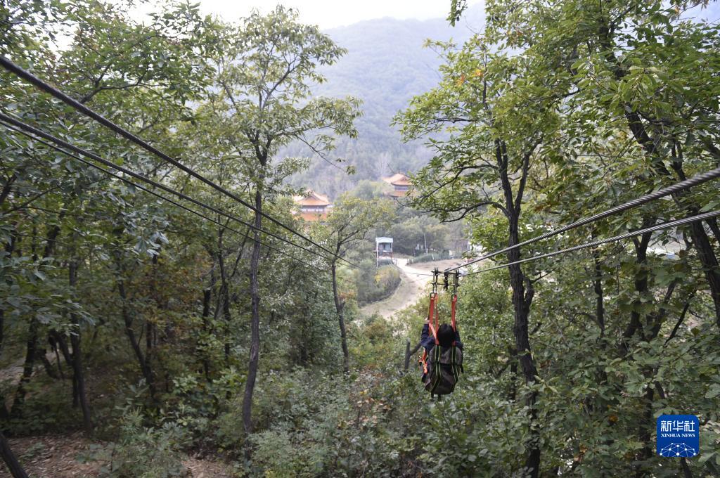 10月27日,游人在大鴻寨公園體驗“空中飛人”項目。