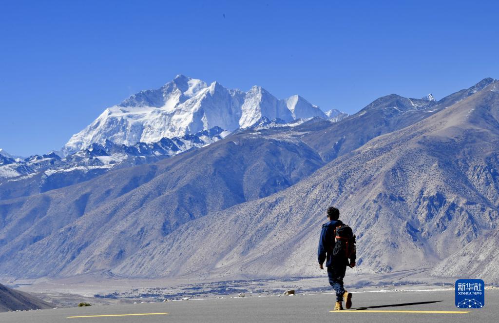 深秋,西藏日喀則市定日縣天高氣爽,游客前來(lái)觀(guān)賞世界最高峰——珠穆朗瑪峰。