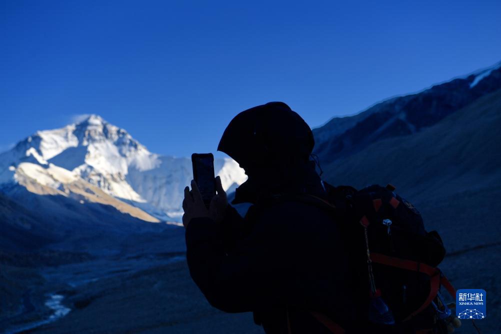 深秋,西藏日喀則市定日縣天高氣爽,游客前來(lái)觀(guān)賞世界最高峰——珠穆朗瑪峰。