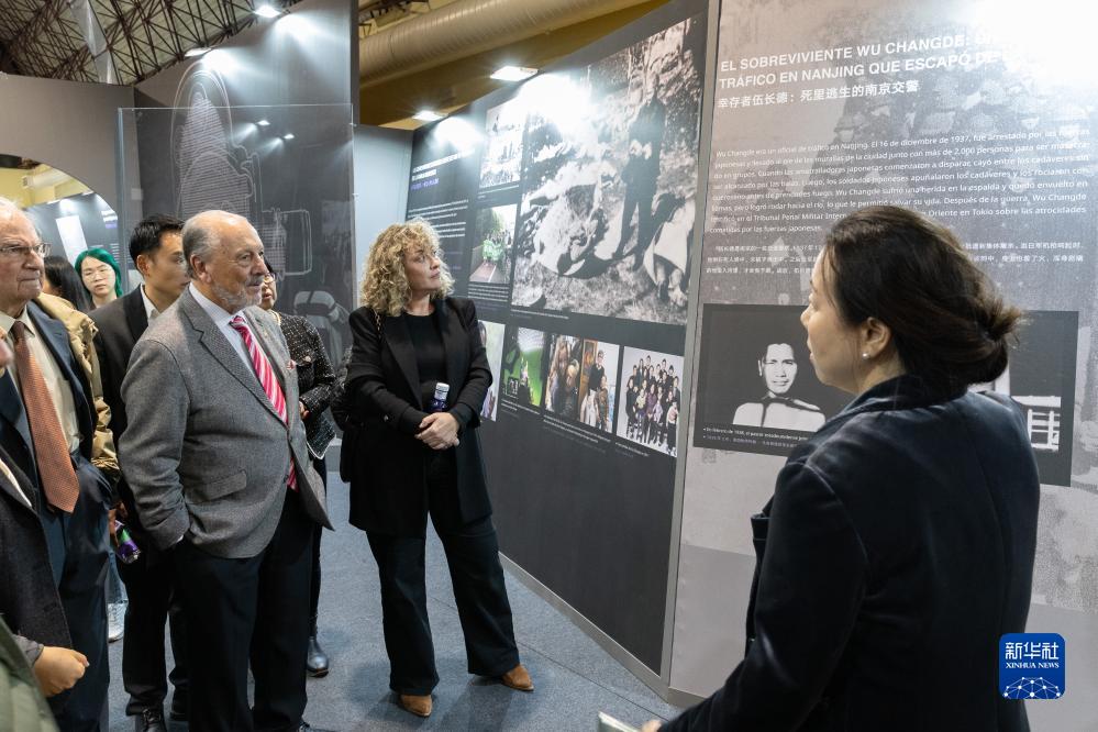 10月26日,觀(guān)眾在西班牙馬德里參觀(guān)《世界記憶、和平愿景——南京大屠殺史實(shí)展》。