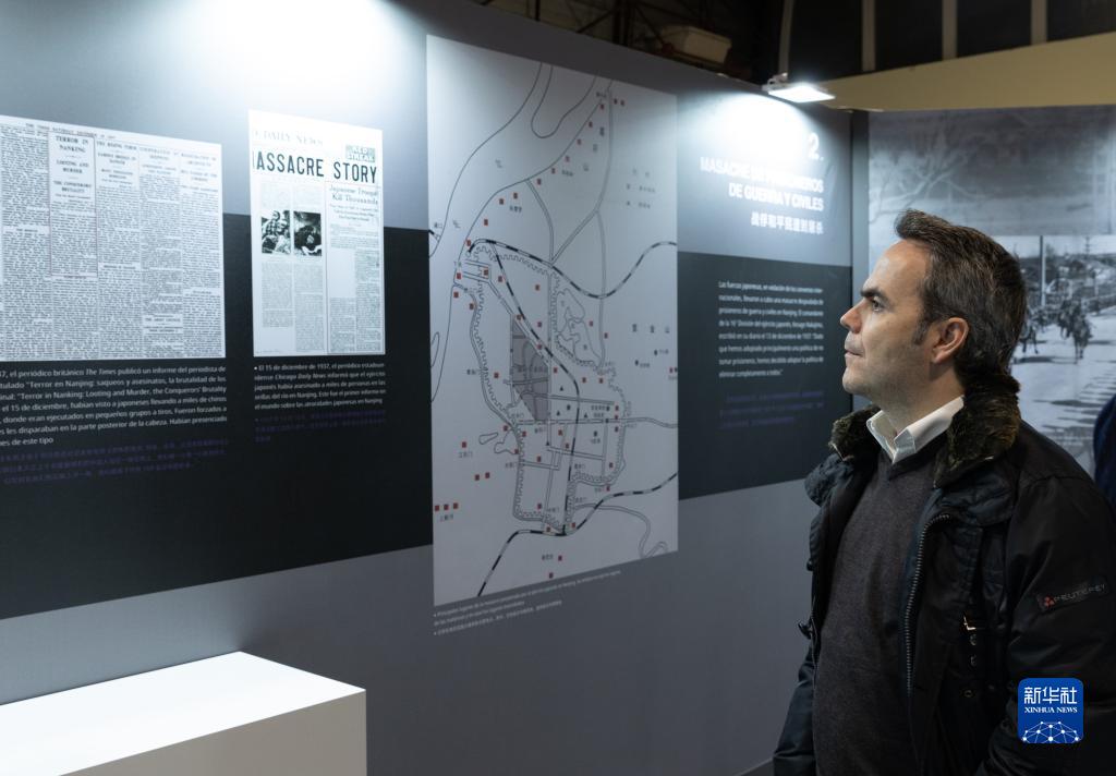 10月26日,觀(guān)眾在西班牙馬德里參觀(guān)《世界記憶、和平愿景——南京大屠殺史實(shí)展》。