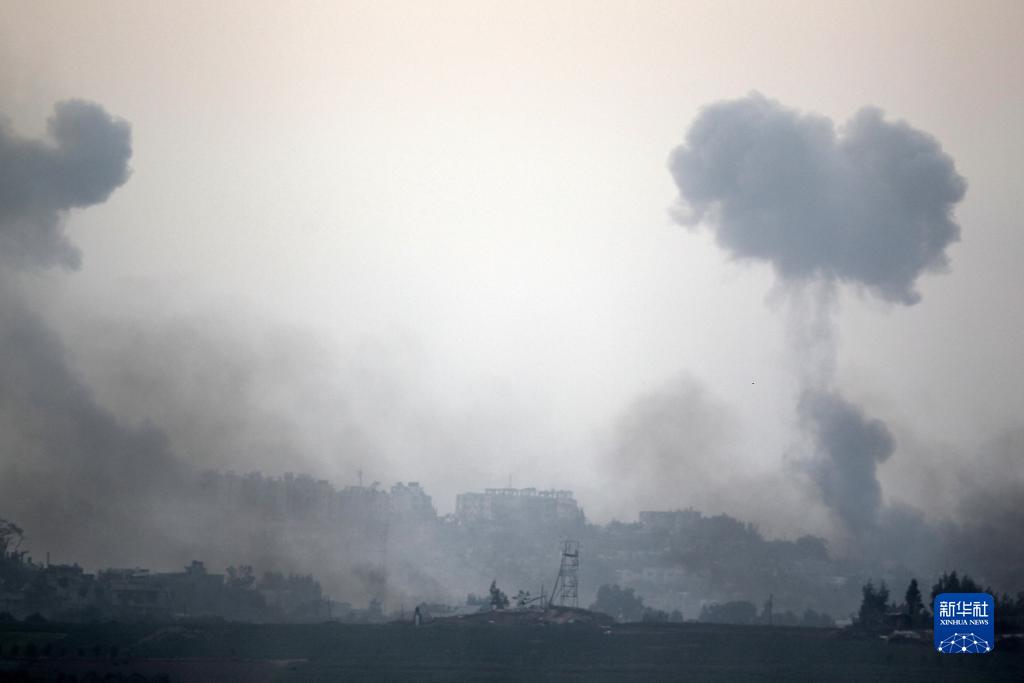 這張10月28日從加沙邊境以色列一側拍攝的照片顯示,加沙地帶北部遭以軍襲擊后升起濃煙。