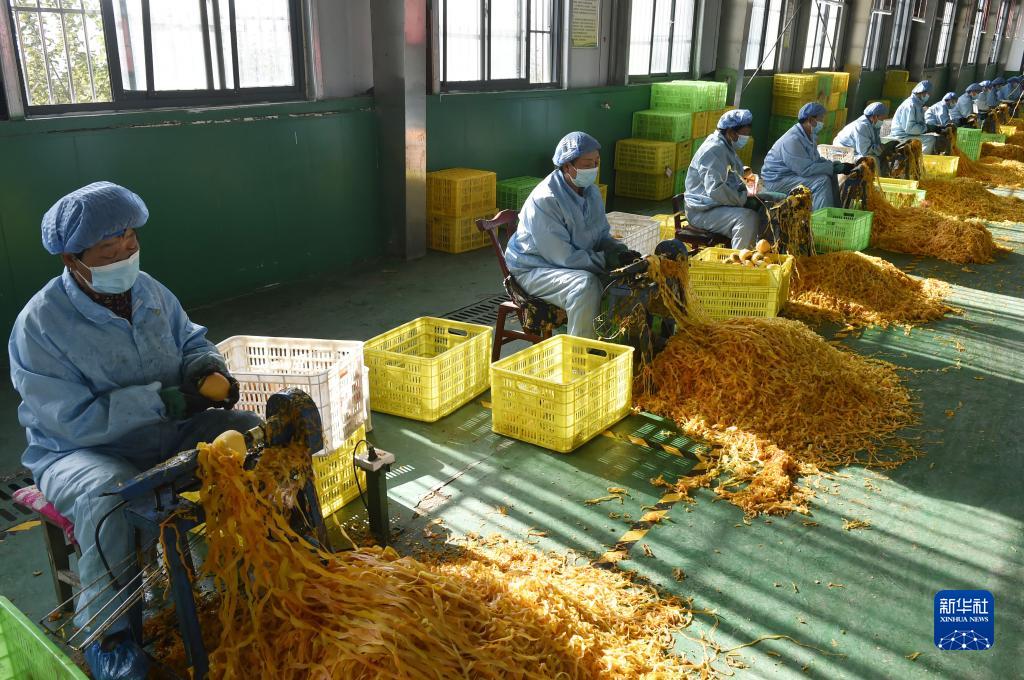 10月28日,村民在禹州市磨街鄉劉門(mén)村的加工廠(chǎng)里給柿子削皮,準備制作柿餅。