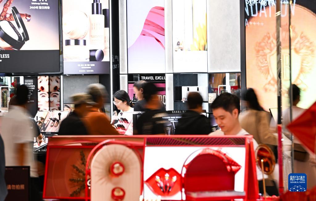消費者在位于海南省??谑械暮?趪H免稅城內購物(10月28日攝)。