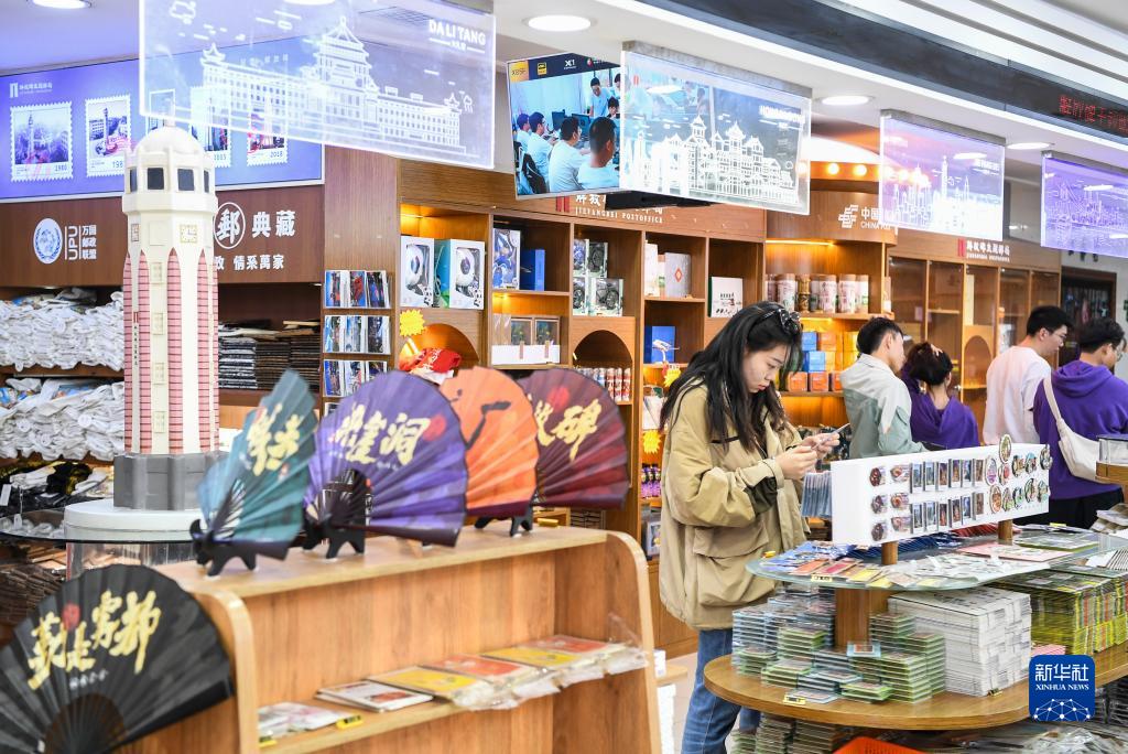 10月29日,游客在位于督郵街的解放碑主題郵局參觀(guān)、選購。