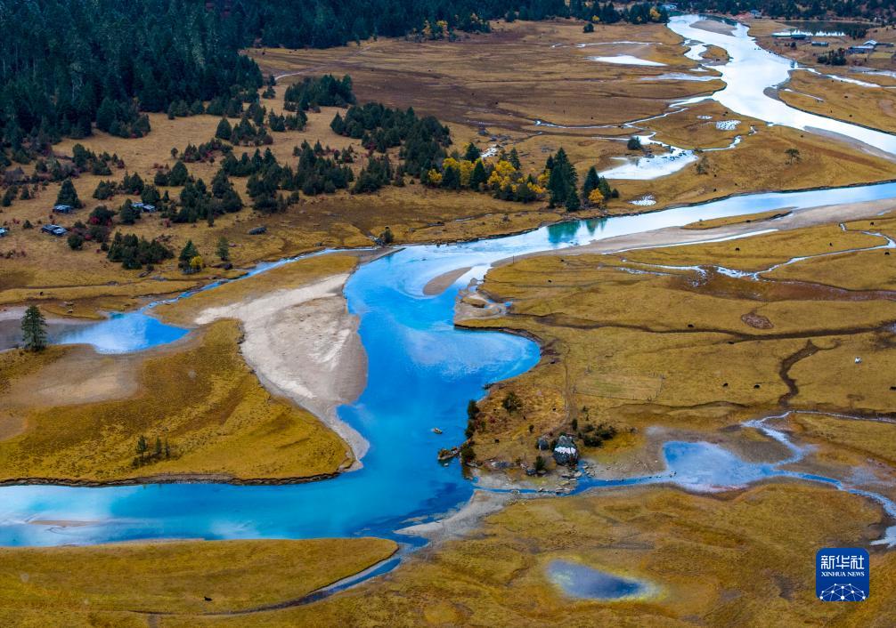 時(shí)值金秋,西藏林芝市秋色已濃,黃葉與初雪交織,流水并雪山輝映,景色如詩(shī)如畫(huà)。