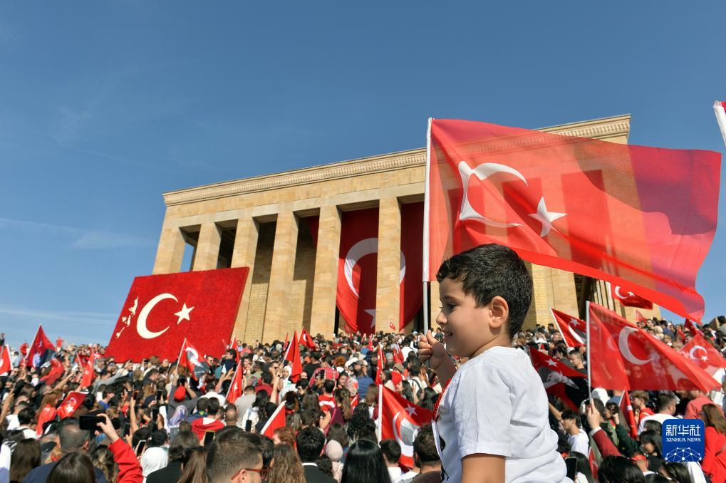 當日,土耳其舉行共和國成立100周年慶?;顒?dòng)。