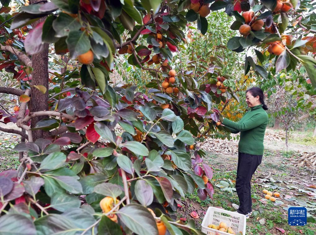 10月29日,河北省順平縣安陽(yáng)鎮永勝村的果農在果園采收柿子。