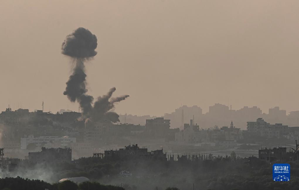 這張10月30日在加沙邊境以色列一側拍攝的照片顯示,加沙地帶北部區域被以軍襲擊后升起濃煙。