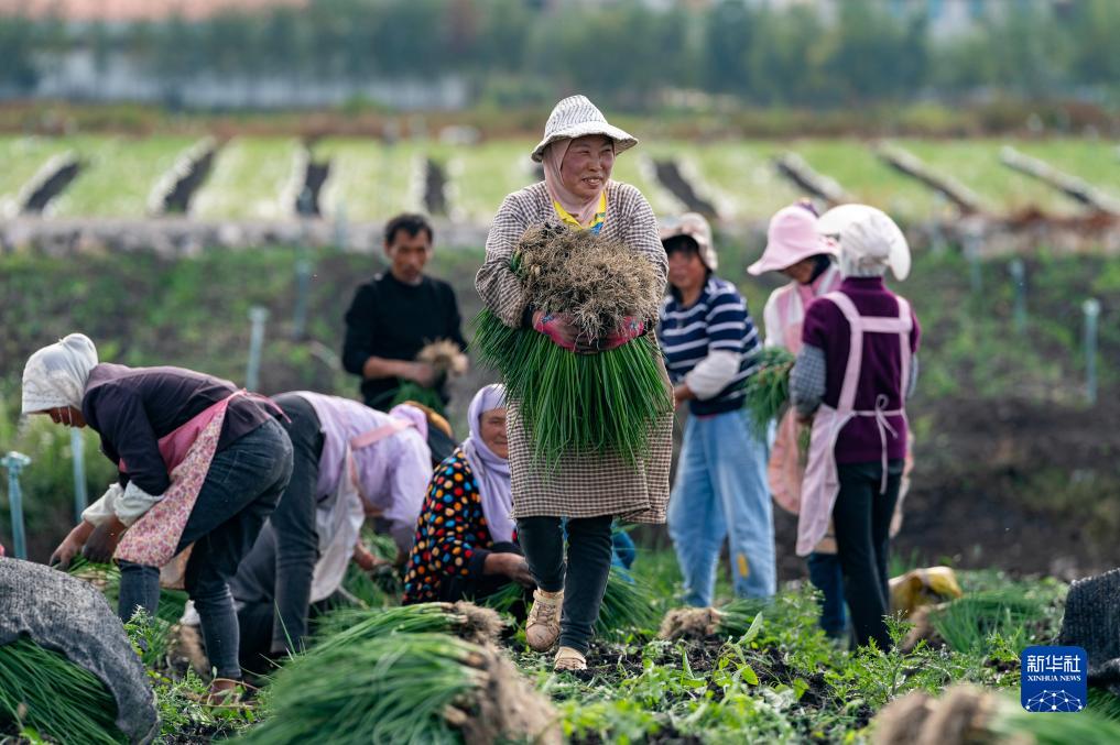 10月30日,農民在魯甸縣一處香蔥種植基地內搬運香蔥。