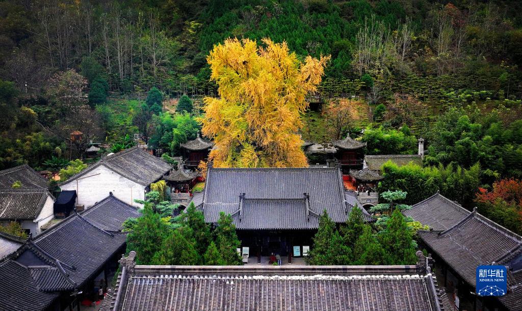 深秋時(shí)節,陜西省西安市長(cháng)安區終南山古觀(guān)音禪寺內的千年銀杏滿(mǎn)目金黃,吸引游客參觀(guān)游覽。