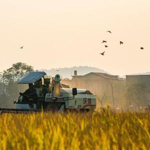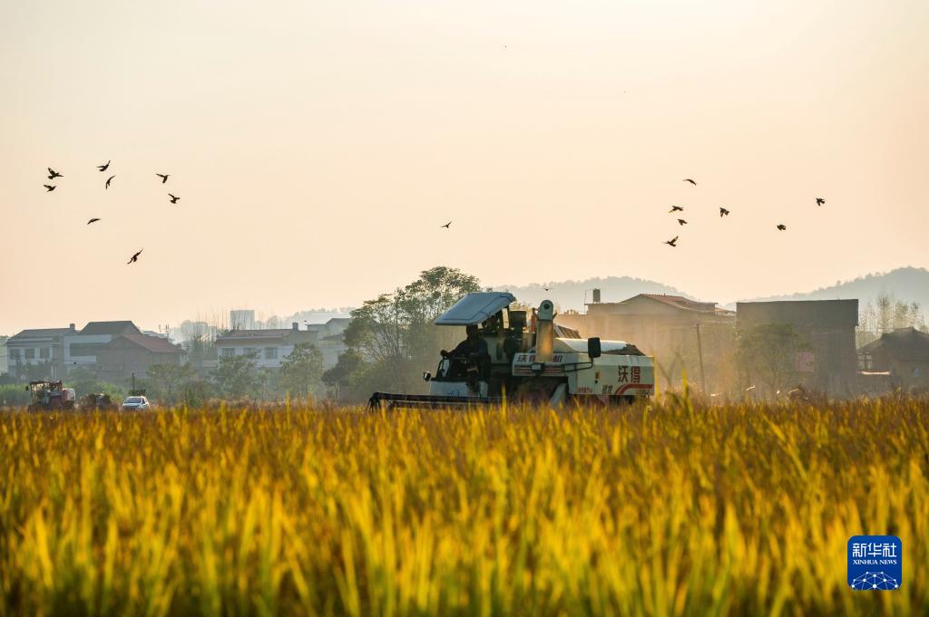 10月29日,在湖南省婁底市雙峰縣梓門(mén)橋鎮八仙村,農民駕駛農機收割晚稻。