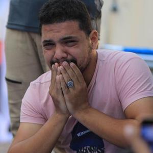 10月31日,在加沙地帶中部城市代爾拜拉赫,人們在失去親友后痛哭。