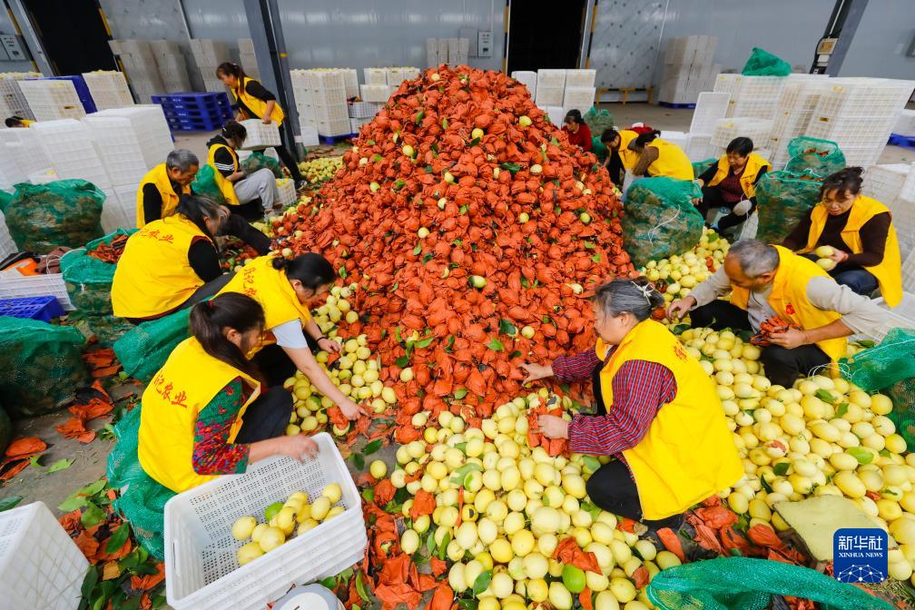 10月31日,在位于四川資陽(yáng)市安岳縣的四川省維記農業(yè)集團有限公司,工人初步挑選新鮮檸檬。