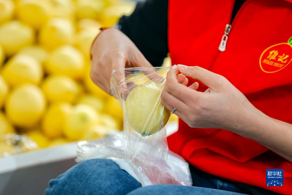 10月31日,在位于四川資陽(yáng)市安岳縣的四川省維記農業(yè)集團有限公司,工人包裝分揀好的新鮮檸檬。