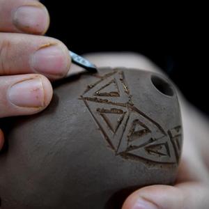 焦作市非物質(zhì)文化遺產(chǎn)黃河泥塤制作技藝代表性傳承人王建是土生土長(cháng)的武陟人,他自幼與音樂(lè )結緣,三十余年來(lái)潛心研究,專(zhuān)注手工制作黃河泥塤,用塤樂(lè )語(yǔ)言講述黃河故事。取自黃河灘地的泥土加入水的滋潤,再經(jīng)由王建的一雙巧手,經(jīng)過(guò)數十道工序被塑造成形狀各異的黃河泥塤。談起自己的初心和夢(mèng)想,王建說(shuō),他用黃河水、黃河泥制作黃河泥塤,用黃河泥塤吹奏黃河音樂(lè ),用黃河音樂(lè )傳播黃河文化。