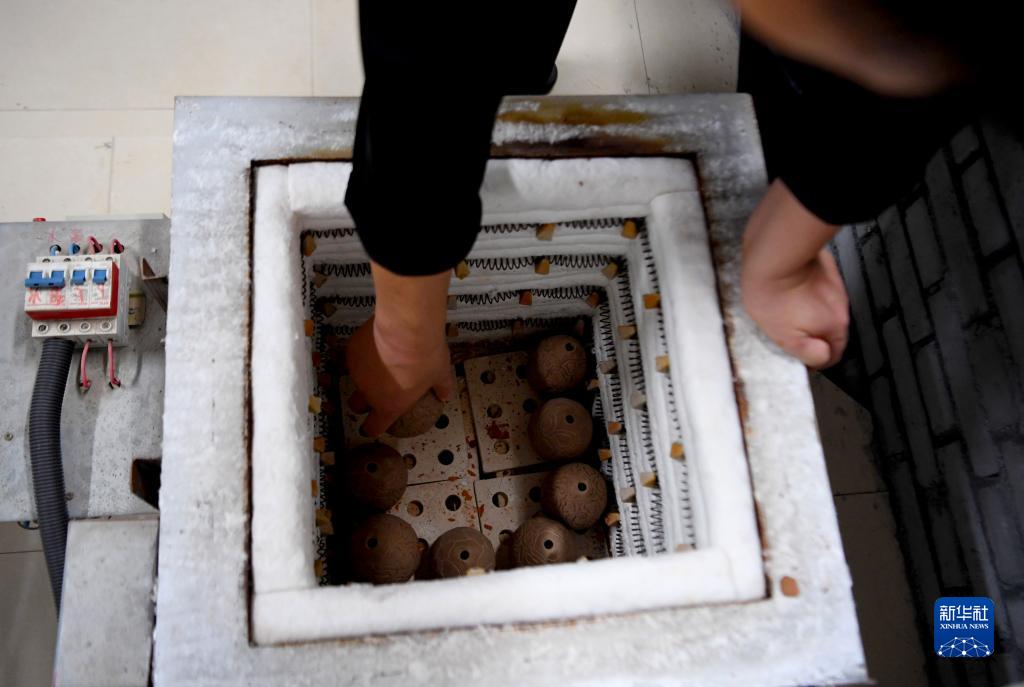 10月31日,在河南省武陟縣黃河交通學(xué)院工作室,王建準備燒制黃河泥塤。