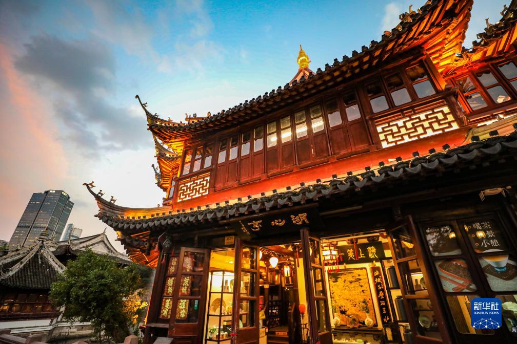 這是10月11日在上海豫園拍攝的湖心亭茶樓。湖心亭茶樓是上?,F存最古老的茶樓。