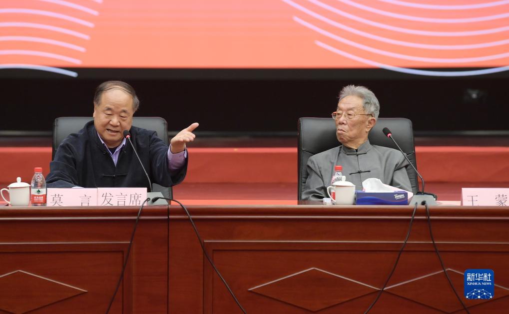 11月1日,作家莫言(左)在研討會(huì )上發(fā)言。