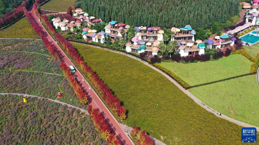 11月1日,游客在貴州省黔西南布依族苗族自治州興義市觀(guān)賞楓葉(無(wú)人機照片)。