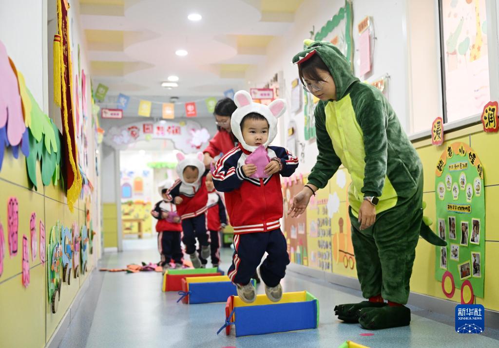 11月1日,天津市和平區第五幼兒園的小朋友在室內進(jìn)行體育鍛煉。