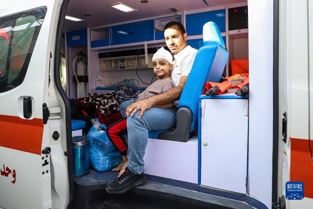 11月1日,受傷人員在拉法口岸加沙一側的救護車(chē)中等待前往埃及。
