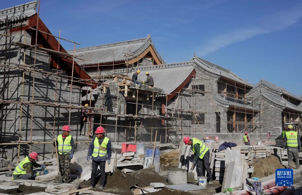 11月1日,工人在河北省張家口市萬(wàn)全右衛城長(cháng)城國家文化公園文旅融合區項目建設工地施工。