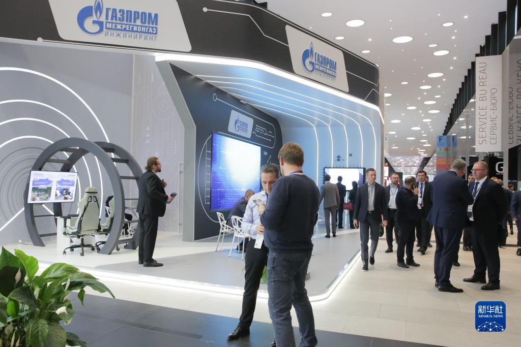 這是11月1日在俄羅斯圣彼得堡拍攝的第十二屆圣彼得堡國際天然氣論壇展會(huì )會(huì )場(chǎng)。