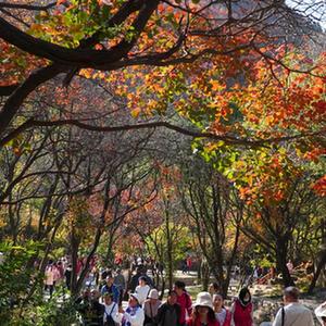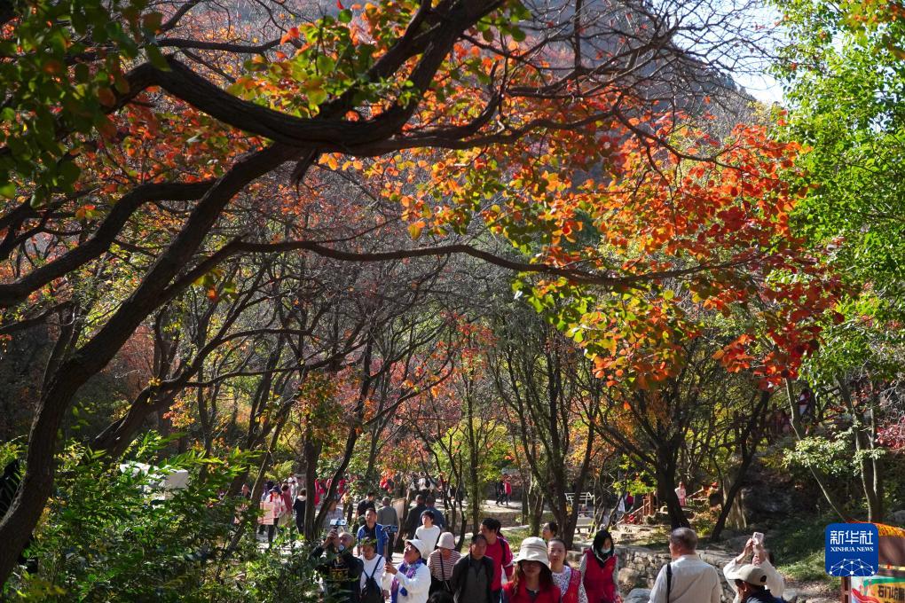 金秋時(shí)節,山東省濰坊市臨朐縣石門(mén)坊景區內紅葉漫山,層林盡染,吸引游客前來(lái)觀(guān)賞游玩。