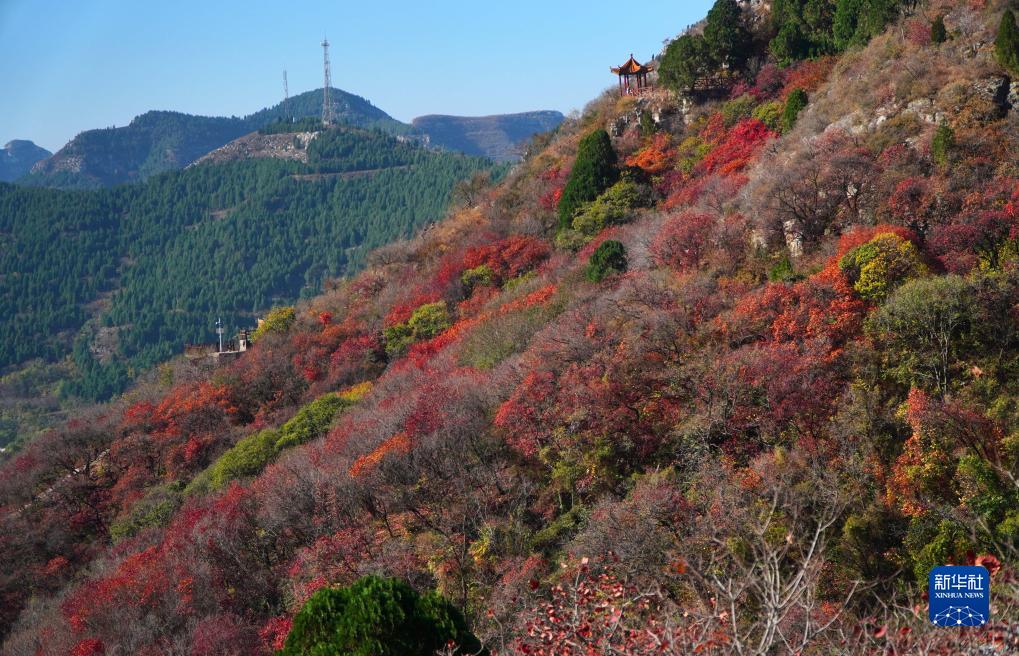 金秋時(shí)節,山東省濰坊市臨朐縣石門(mén)坊景區內紅葉漫山,層林盡染,吸引游客前來(lái)觀(guān)賞游玩。